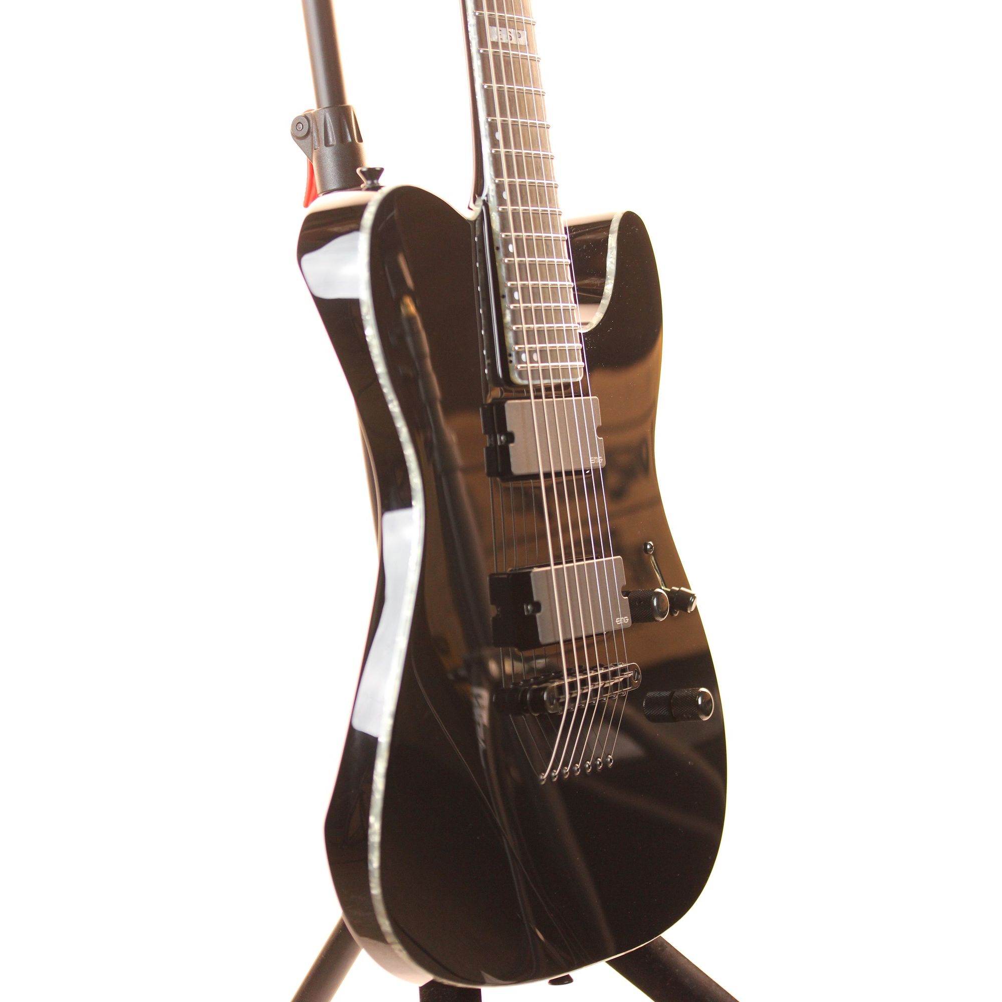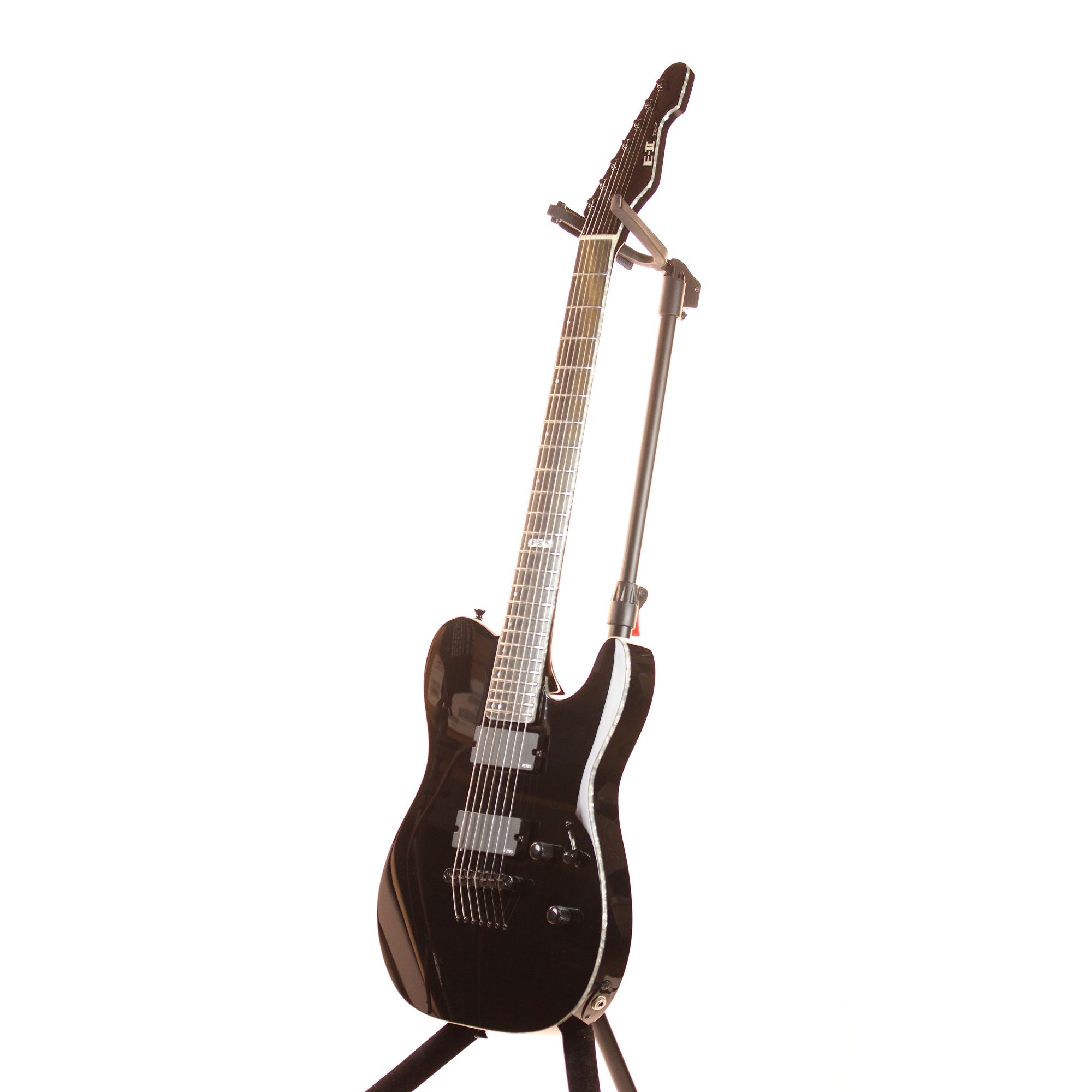 The ESP E-II TE-7 Tele Black 7 String Electric Guitar w/ Case features: