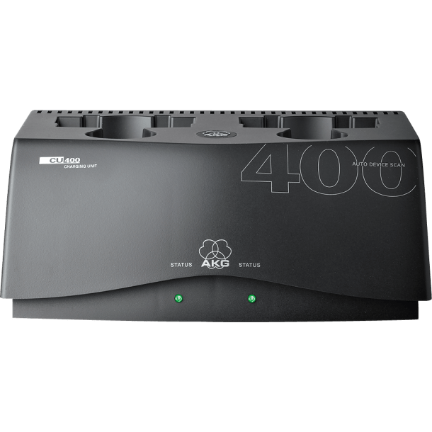 Drop it in for WMS450 and WMS470 series transmitters The AKG CU400 is a high-performance drop-in-style battery charger for WMS450 and WMS470 series wireless handheld and body-pack transmitters. The charger's design and the integrated charging contacts of the transmitter conveniently eliminate the need to remove the battery before charging; simply drop the entire transmitter into the slot. The charger monitors battery voltages and temperatures during charging and automatically ends the cycle when the batteries are fully charged.