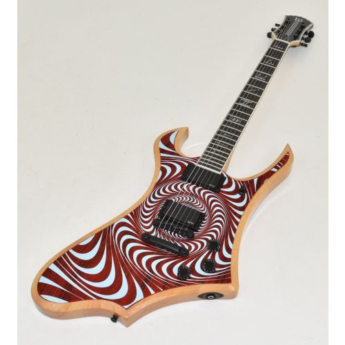 This Wylde Audio Goregehn Cocobolo Psychic Bullseye Guitar is brand new and unplayed with a full manufacturer's warranty. Please note due to the top being random created, the one you will receive may not look like the one in the picture.