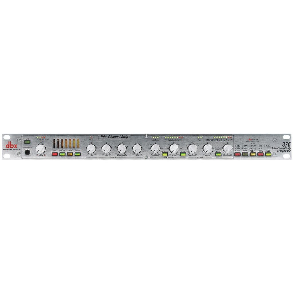 The 376 Tube Channel Strip w/Digital Output is the latest addition to the Silver Series family. The 376 puts the best of both worlds into one affordable package by combining the warmth of the vacuum tube,with the proprietary dbx Type IV® conversion system. The 376 boasts many of the same features as other products in the Silver Series,such as +48V phantom power,a phase invert switch,and low cut filtering. In addition,the 376 also offers digital output capabilities in both AES/EBU,and S/PDIF formats as standard features. The high impedance,1/4" instrument input located on the front panel,as well as the mic/line switch,and 20 dB pad show our dedication to providing convenience in the studio. The LED meters provide a clear and concise visual of the signal processing at a glance. The rear panel includes both mic and line inputs and outputs,word clock sync input and output,insertion jack and digital outputs. Add selectable sampling rates of 44.1 kHz,48 kHz,88.2 kHz,or 96 kHz; selectable dithering and noise shaping; and separate analog and digital output controls to this already impressive list of features,and we think you’ll agree that the 376 lives up to the uncompromising standards of dbx Professional Products.