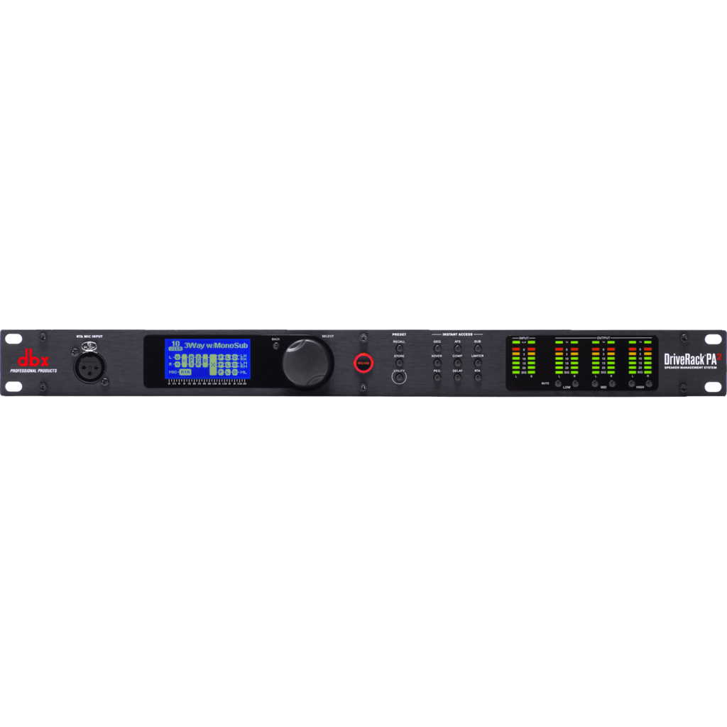 The DriveRack® PA2 provides all the processing you need between your mixer and amplifiers to optimize and protect your loudspeakers. With the latest advancements in dbx’s proprietary AutoEQ™ and AFS™ algorithms,a new input delay module for delaying the FOH system to the backline,Ethernet control via an Android®,iOS®,Mac®,or Windows® device,and updated Wizards,the DriveRack PA2 continues the DriveRack legacy of great-sounding,powerful,and affordable loudspeaker management processors,for a whole new generation.