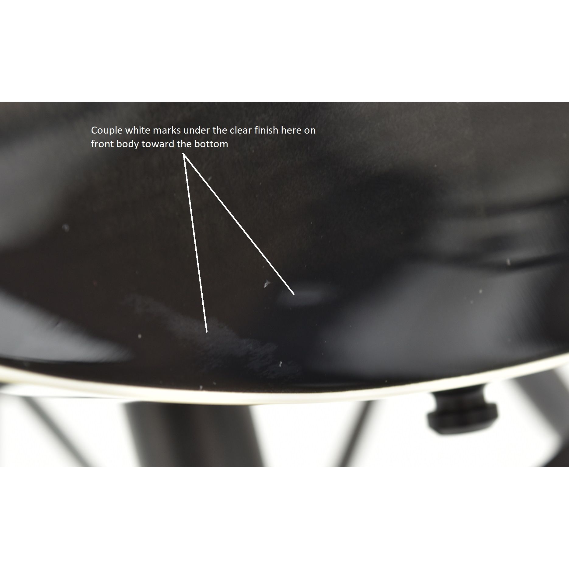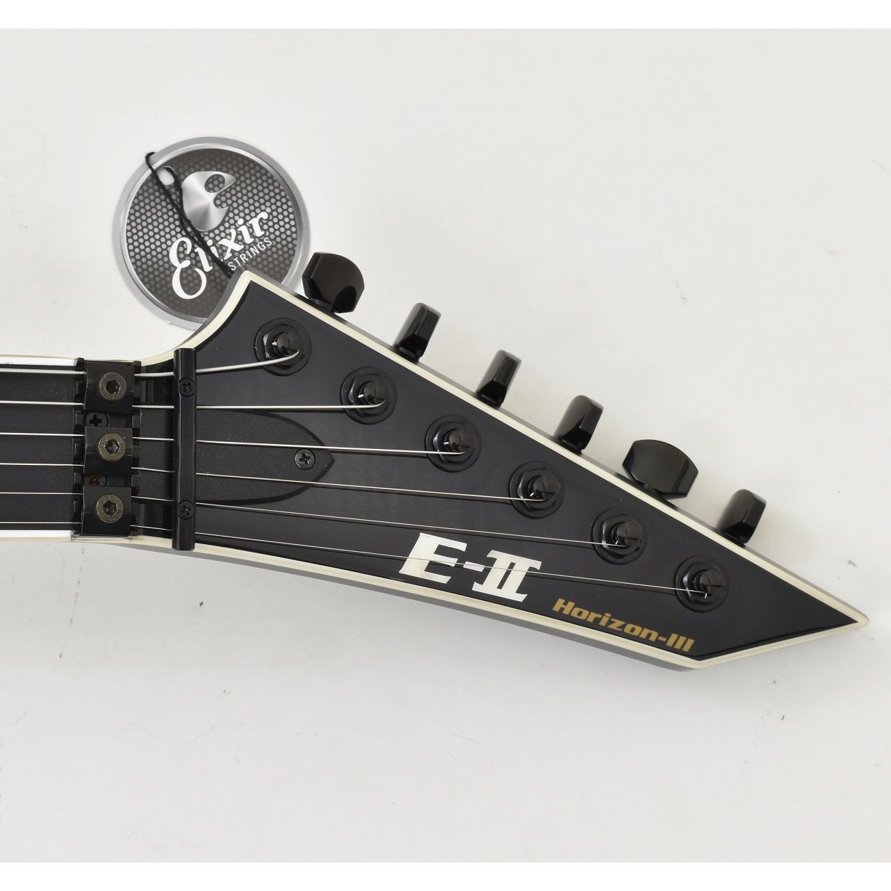 This B stock E-II Horizon III FR guitar is in excellent condition. There are couple white marks under the clear finish on the guitar body toward the bottom. Please see pictures for more detail. Great buy on awesome guitar!