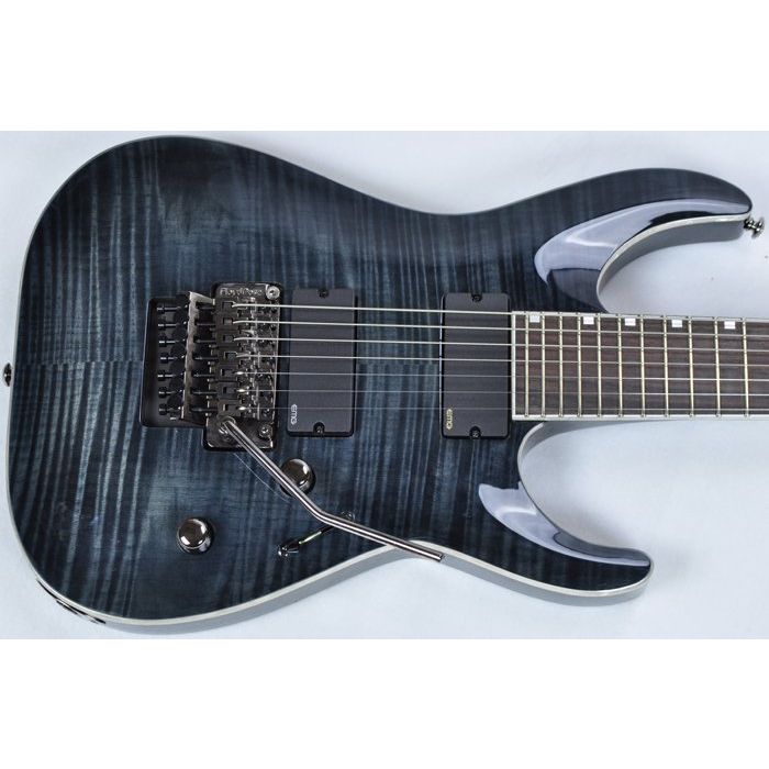 The mahogany body produces rich,warm lows and sweet sustain while the flamed maple top adds brightness and clarity. The Floyd Rose 1000 series trem is industrial strength,built to withstand the most rigorous whammy action even with 7-strings. EMG 81-7 and 707 active humbuckers to yield massive attack,definition,and sustain.