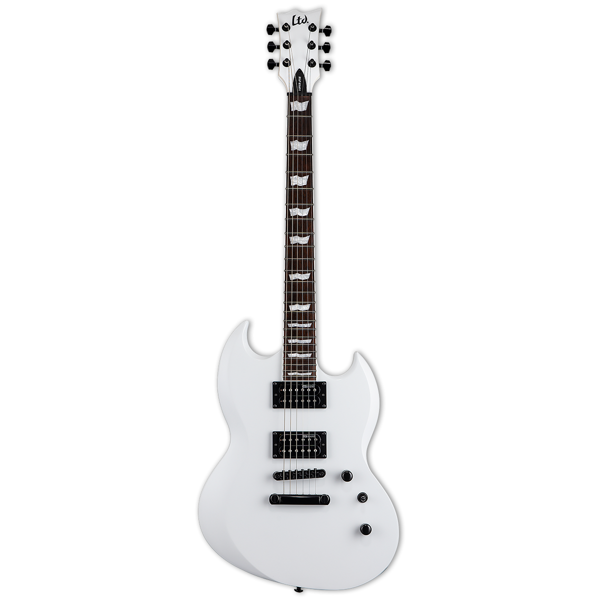ESP LTD’s Viper Series offers the cool offset double-cutaway look that’s perfect for metal, hard rock, blues, and so much more. With the Viper-256, you get the classic vibe of a mahogany-bodied rock and roll machine, in your choice of Military Green Satin, Snow White, or See Thru Black Cherry finishes. The Viper-256 offers great features like set-neck construction with a fast three-piece mahogany neck and 24-fret roasted jatoba fingerboard, and a set of high-gain ESP Designed humbuckers as well as LTD tuners and a TOM bridge & tailpiece.