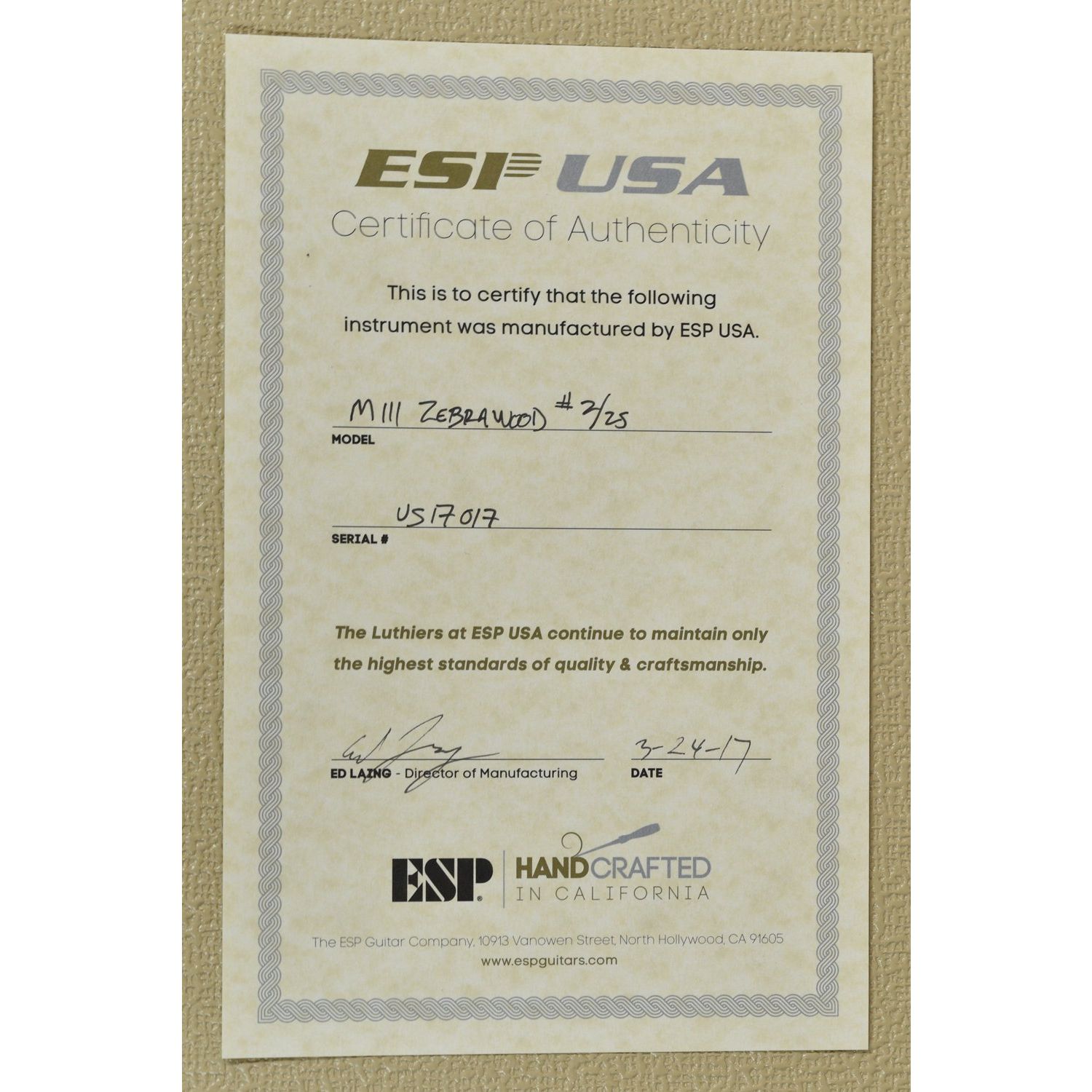 ESP USA M-III 2PT Zebrawood Top Okoume Body Electric Guitar Natural Gloss