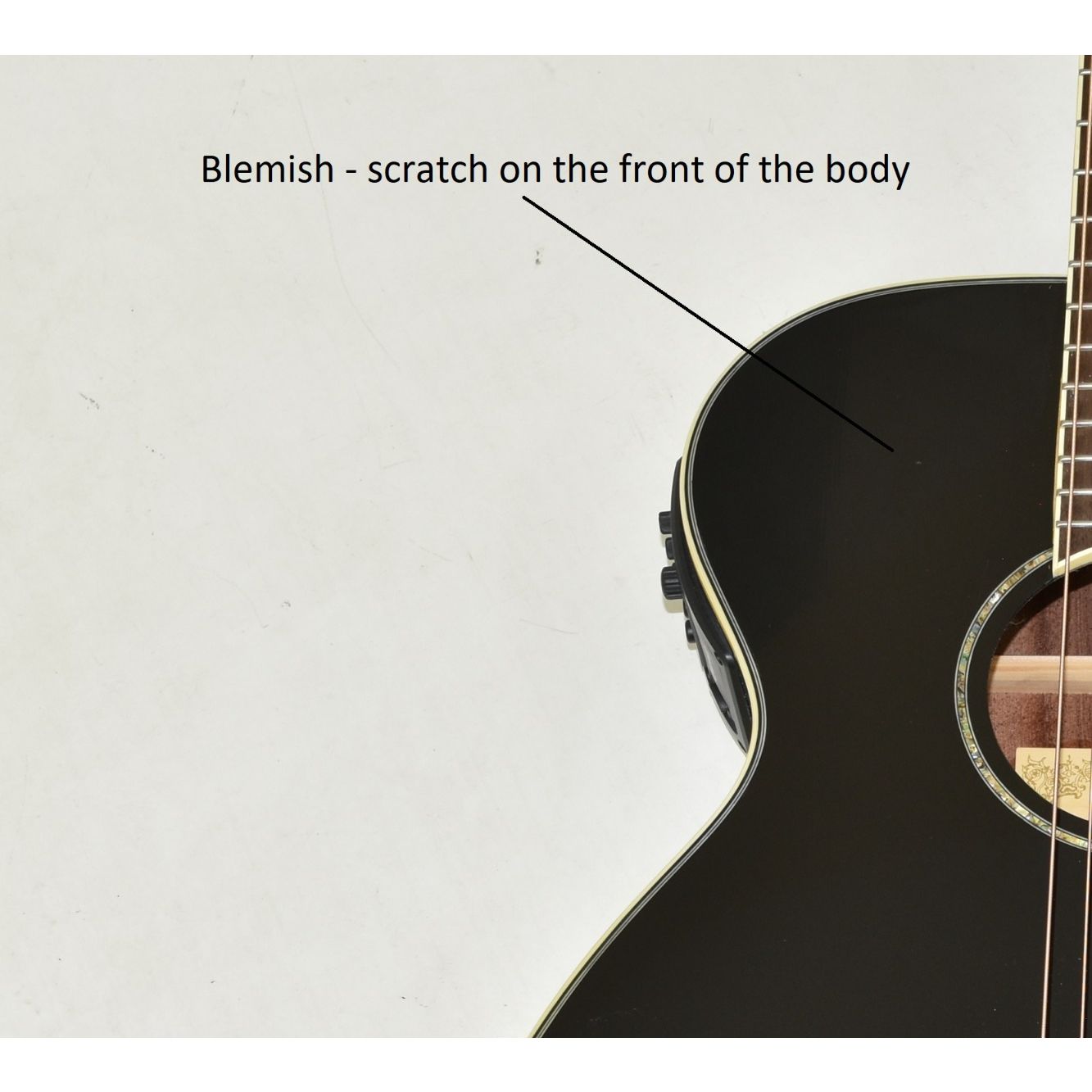 B-Stock guitar with a scratch on the top of the body. There are also a few minor scratches on the back of the body under the finish. Please see images for details. Great guitar, ready to play.