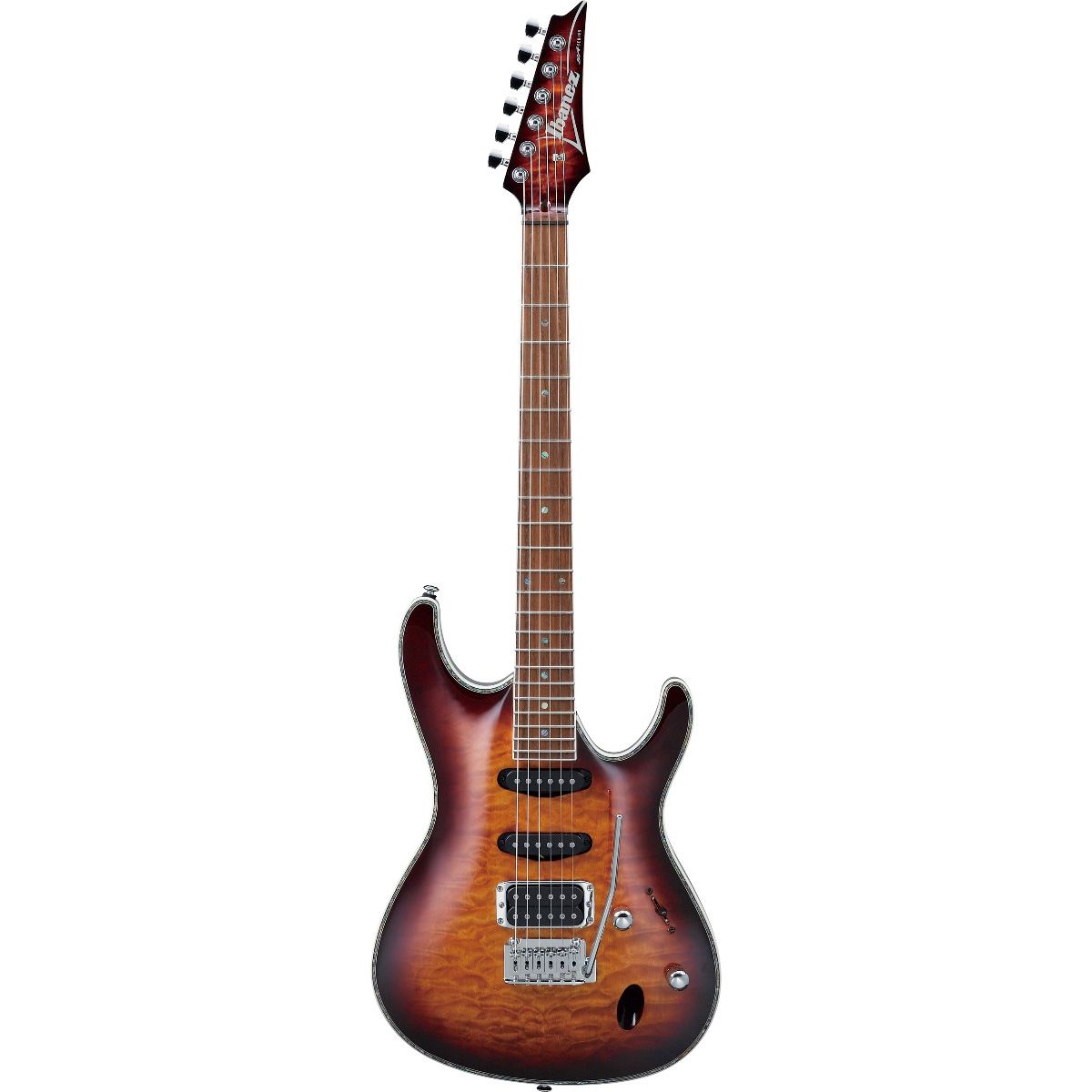 Slim and fast Maple neck, all access neck joint and scoop cut on the body back provides amazing playing comfort. Staggered locking machine heads and Ibanez original T102 tremolo combined to provide superior tuning stability, proper string tension and long sustain. The SA460QM includes two Resolution single-coil pickups, one Quantum humbucker pickup. They feature a well-balanced tone and a wide dynamic range for tonal versatility. Wired through a 5-way pickup selector switch, they can be combined in a variety of configurations that create a wide palette of tonal options.