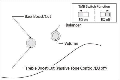 - equalizer Ibanez Custom Electronics 2-band EQ w/EQ bypass slide switch (passive tone control on treble pot)