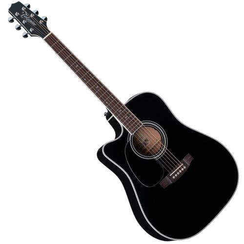 This guitar has been the choice of pro musicians of all genres. The versatility of this guitar begins with its solid cedar top that can play sweet mellow passages or power chords with equal ability. The maple back and sides are a perfect reflector for the tone generated by the soundboard and the gloss black finish looks great under the stage lights. The mahogany neck is joined to the body with a traditional,ultra strong dovetail joint.