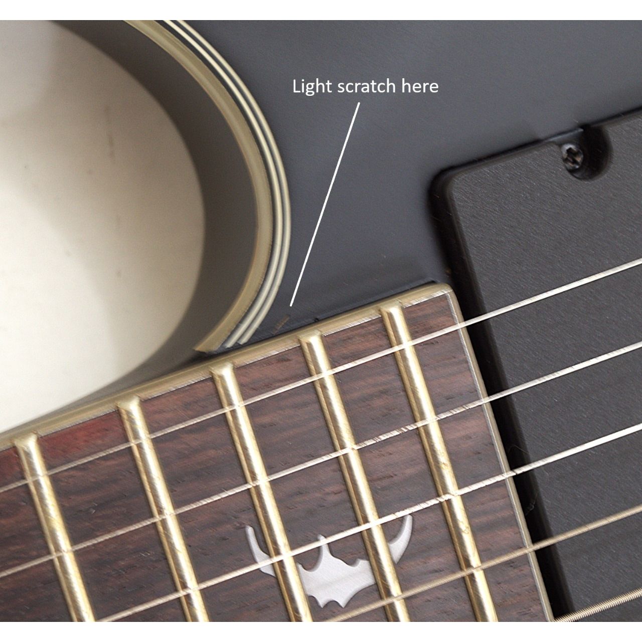 This Damien Platinum-8 Guitar is great condition! There are a few cosmetic blemishes on the binding and body of the guitar. Please see the close up pictures for more details. Great deal on an awesome guitar!