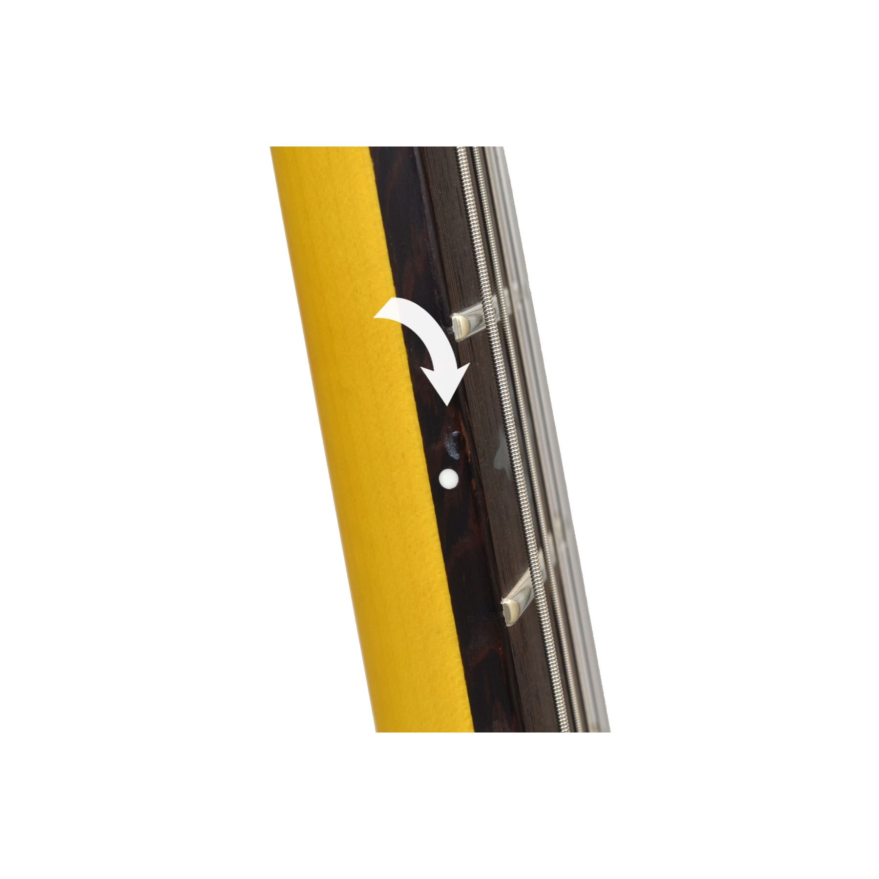 B-stock guitar with stain on side of fretboard at 5th fret.