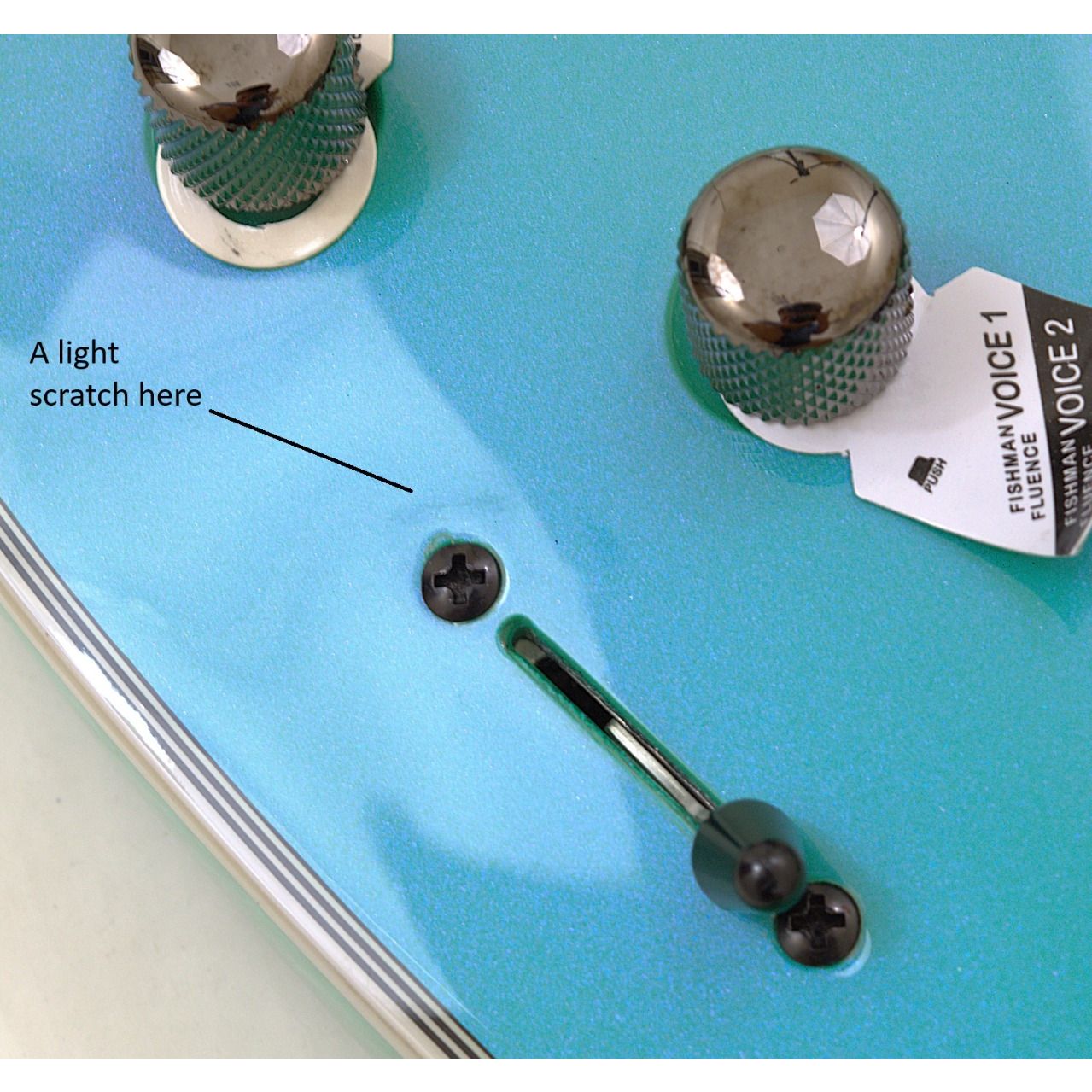 - Controls: Master Volume (push-pull for Fluence voices), Master Tone (Fishman reactive tone with push-pull phase switch), 5-way selector
