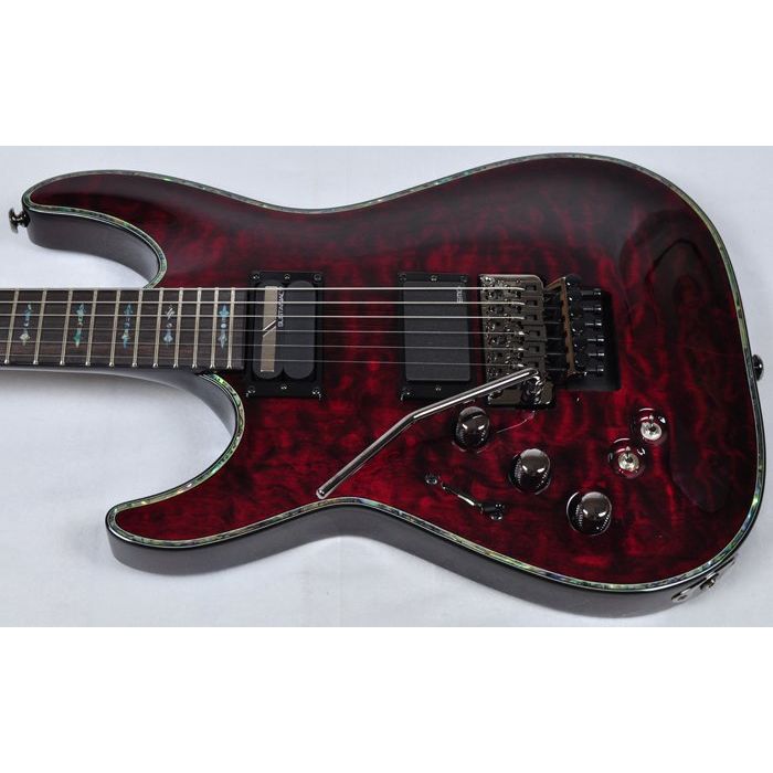 Schecter Hellraiser C-1 FR Sustainiac Left Handed Electric Guitar in Black Cherry