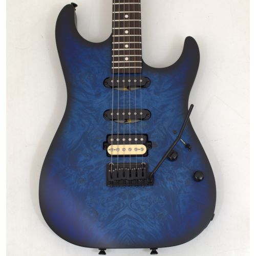 The burl maple top over an alder body creates a stunning Ocean Blue Burst Satin finish that exudes sophistication. The lightweight alder body offers excellent resonance and tonal balance, while the burl maple top adds brightness and articulation. The black hardware complements the vivid finish, making this guitar a standout on stage or in the studio.