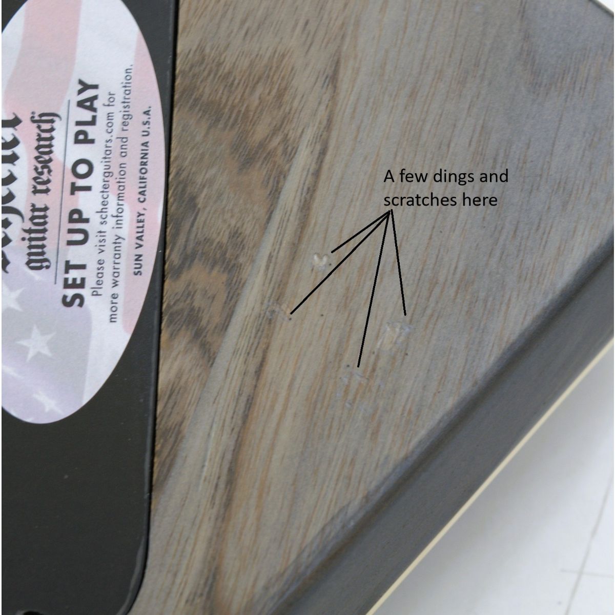 This B stock Schecter E-1 SLS Elite Evil Twin guitar is unplayed and in great condition! There are a few blemishes on the body, please see the close up picture for more detail. Great buy on a great guitar!