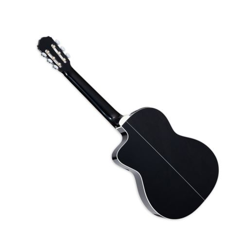 Design and Craftsmanship: The GC2CE features a classical cutaway body shape that not only provides a timeless aesthetic but also offers easy access to the upper frets for more complex playing styles. The top is made from select spruce, known for its bright and clear sound, while the back and sides are crafted from sapele, adding warmth and depth to the guitar's overall tone. The entire body is finished in a sleek, gloss black, giving it a sophisticated look that stands out on stage.