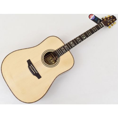 This Takamine Custom Shop SG-CPD-AC1 Dreadnought Acoustic Guitar is made in Japan with high level of details and quality components for excellent sound and artistic look! The top is built with Solid Adirondack spruce found on very high end collectible guitars, resulting beautiful sound that would get better and better through time. The back and side are solid Cocobolo offering you a better combo of both highs and lows along with the striking visual effects that you can only find on this exotic high end wood. Flamed maple binding for both the top and the back body. This custom Takamine guitar also come with 1 piece mahogany neck, which require a much bigger chunk of wood to carve from and can only find on custom shop guitars. Another rare feature on this custom guitar is the "double hearts" abalone inlays, which (if we are not mistaken) only found on one other Takamine model outside of Japan! The top of the headstock is the matching Cocobolo wood from the body, creating an eye catching theme. Please check out all of the images for more details.