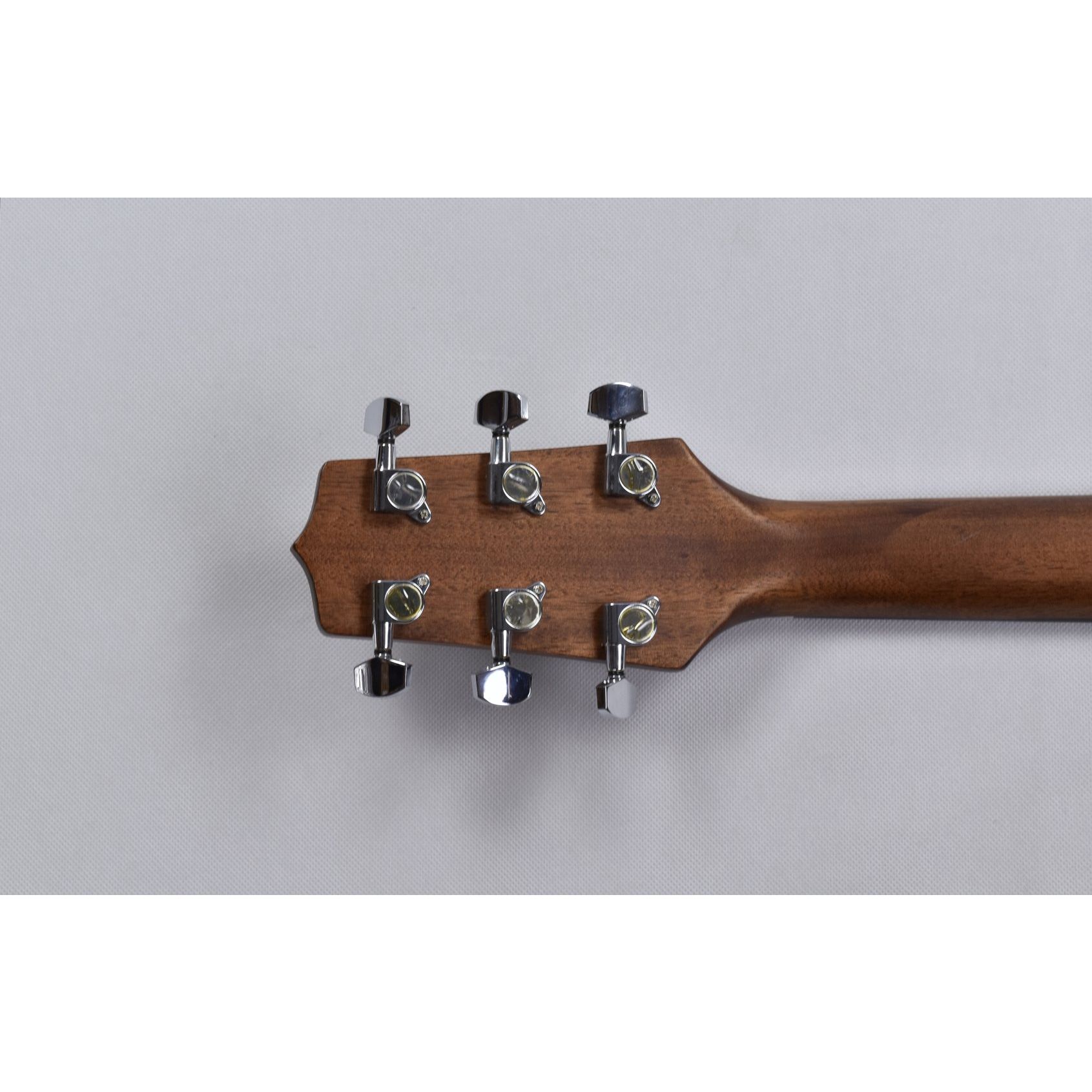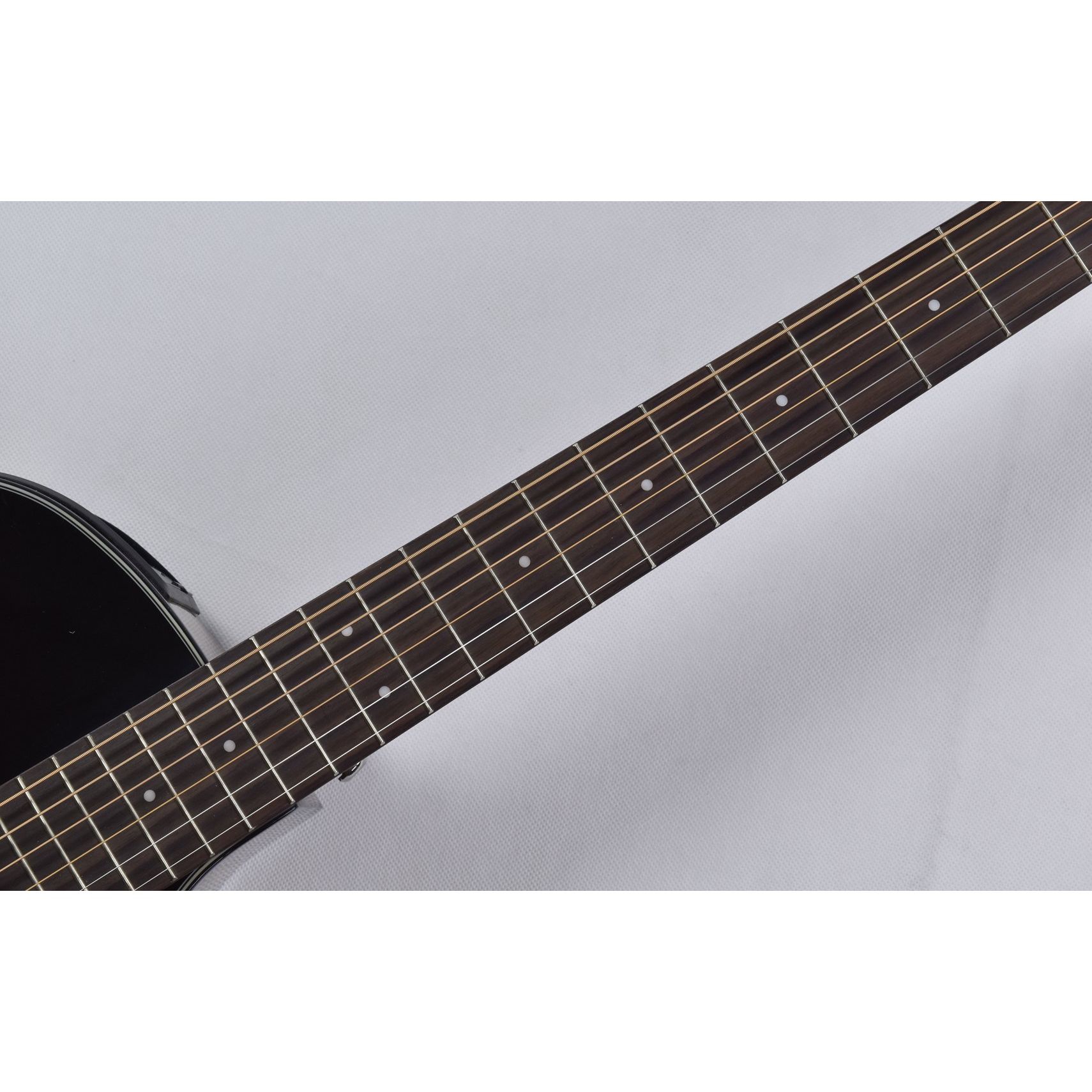 Other great features include a pin-less rosewood bridge,synthetic bone nut and split bridge saddle,rosewood headcap,pearloid rosette and dot inlays,chrome die-cast tuners and a beautiful gloss finish. Available in Natural,Black and Sunburst.