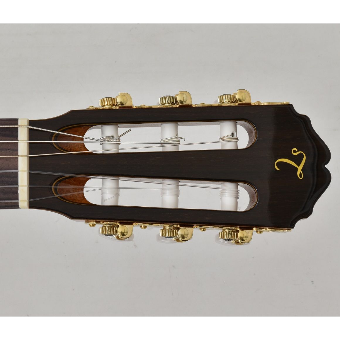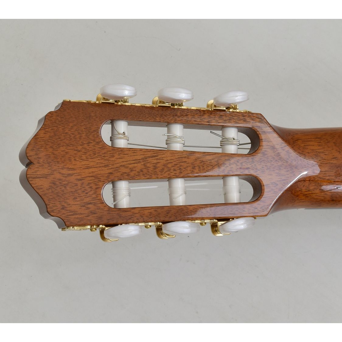 This nylon string classical guitar pays homage to traditional classical instruments and follows closely to the original drawings of Antonio Torres. It is the first choice of performing classical latin and jazz musicians looking for pure nylon string tone at amplified volume levels. The solid cedar top produces a warm full tone with plenty of dynamic range. The solid rosewood back aids in the projection and enhances the sonic brilliance of the instruments. Gloss natural finish provides durability and adds to the beauty of the guitar. The mahogany neck features a dual action truss rod,which keeps the guitar playing perfectly in any environment.